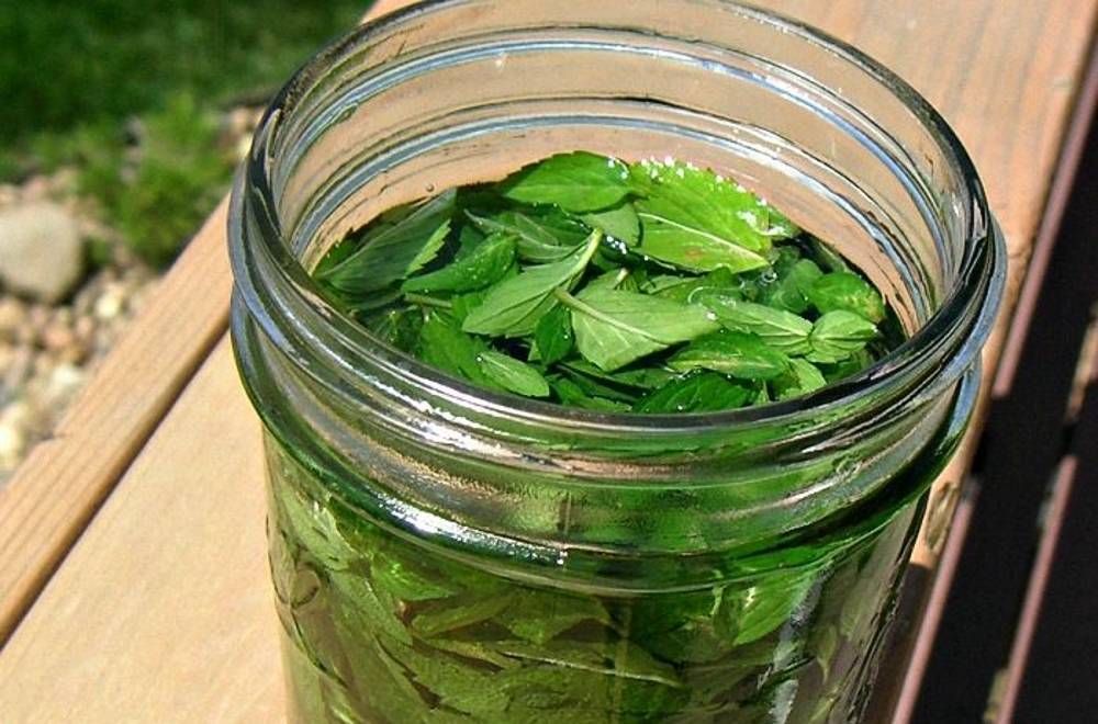 - Сушеную мяту залейте спиртом в стеклянном сосуде.