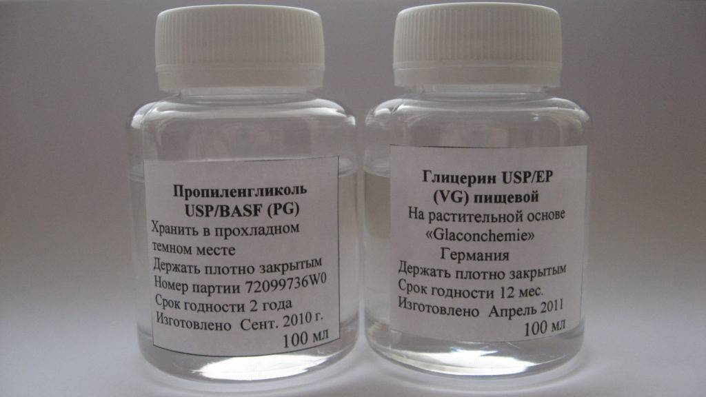 Другие компоненты, в т. ч. и никотин, добавляют в состав по желанию. Различные добавки могут влиять на запах и крепость жидкости.