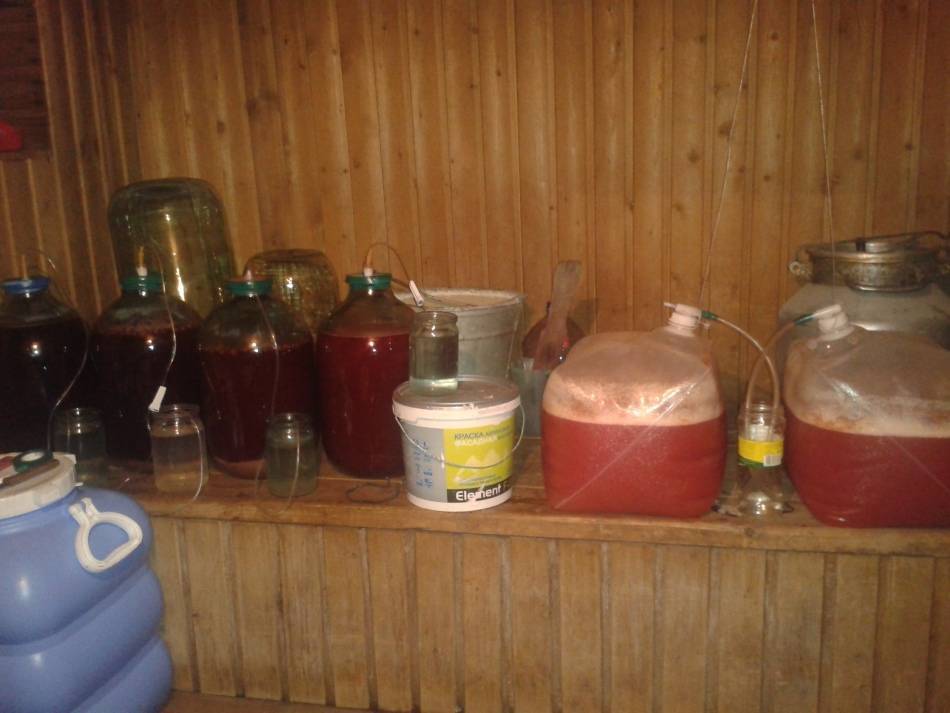 - Ягоды разделяться на два слоя. Тот, что плавает на поверхности следует выловить шумовкой. Ягоды отжать, сок вернуть в ведро, а жмых выбросить. Брожение продолжается на 5-7 дней