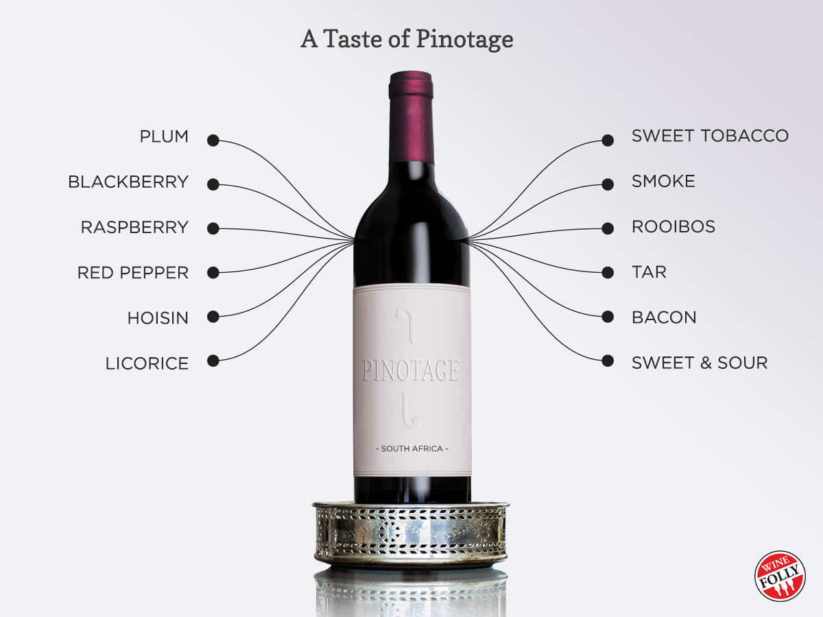 Разноплановость — одно из основных вкусовых качеств виноградного сорта пинотаж. Но в любом случае вино на основе данного сорта отличается насыщенностью, кислотностью и фруктовостью при достаточной глубине напитка.