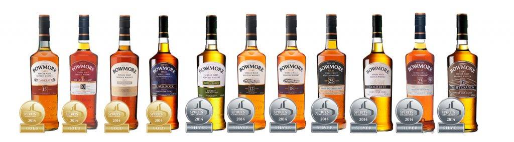Bowmore Darkest, 15 Years Old (43%). Медно-золотистый с красноватыми проблесками односолодовый скотч из спиртов, только 80% которых созревали в таре из-под бурбона, а остальные 20% — из-под хереса Fino. Лёгкий свежий аромат с нотами изюма, вяленой вишни, морской соли и цитрусовых. Характерный дымный вкус с оттенками ванильной глазури и жареных кедровых орешков. Продолжительное согревающее послевкусие с привкусом вереска. Награды: золото и серебро IWSC в 2013 и 2014 годах, гран-при на конкурсе International Spirits Challenge в 2015 году. Виски рекомендован в качестве дижестива, гармоничный аромат становится ярче, если добавить немного ледяной воды.