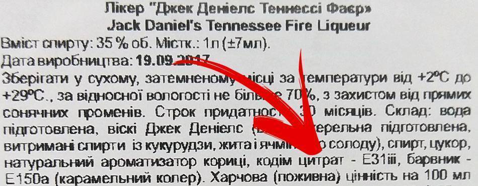 Что касается состава в целом, то здесь все не так сложно: виски Jack Daniel’s плюс коричный ликер (спирт, сахар, натуральный ароматизатор корицы, «секретный ингредиент E31iii» и пищевой краситель E150a). Мы уже привыкли, что даже самые именитые производители алкоголя для придания своим продуктам благородных оттенков используют пищевой краситель E150a, который, по своей сути, является жженым сахаром и абсолютно безвреден. Настораживает лишь, мягко говоря, небольшой срок годности Jack Daniel’s Tennessee Fire – два с половиной года. Например, у Jack Daniel’s Old No. 7, основного ингредиента в составе этого ароматизированного виски, срок годности неограничен.