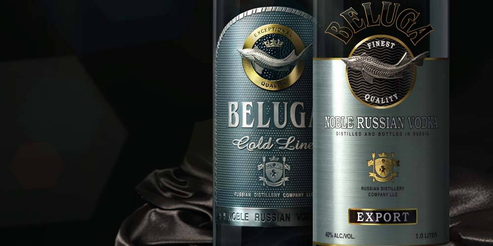 Внешний вид бутылок. Напитки поставляются в магазины в вытянутой высокой таре с ровным дном и оригинальным небольшим дозатором, расположившимся в узкой горловине. На этикетке при этом обязательно нарисована белуга и присутствуют надписи на английском языке. Само же оформление премиального напитка не должно вызывать у потребителя вопросов. Оно обязано быть безупречным, без сколов стекла, асимметрично расположенных этикеток и потеков клея.