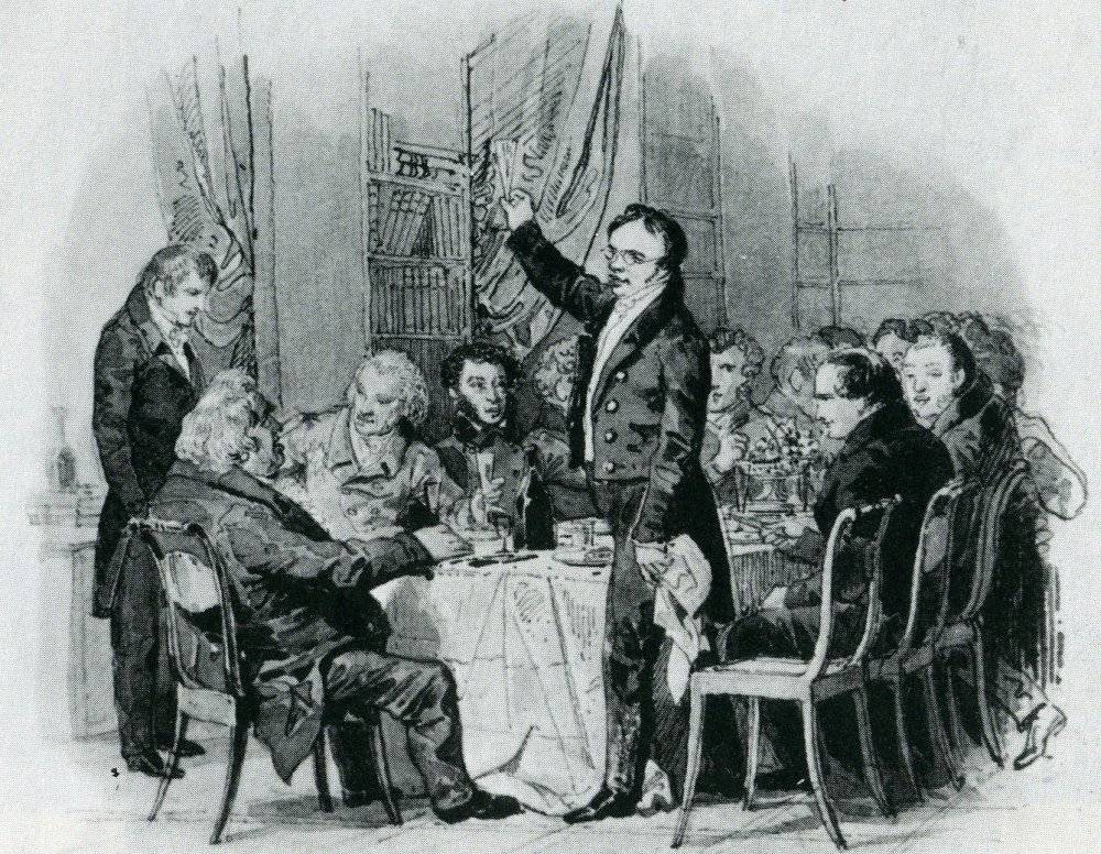 Членом этого дружеского общества был и поручик лейб-гвардии Гусарского полка Петр Павлович Каверин (1794-1855), известный кутила, повеса и бретёр. Да-да, тот самый Каверин, который по воле автора романа в стихах ждал Евгения Онегина в ресторане Талона, чтобы распить с ним “вино кометы”!2.